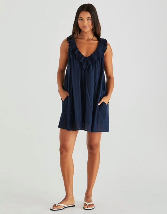 BELEN RUFFLED NECK MINI DRESS - NAVYRegular price $89.95 AUDRegular priceUnit price / per