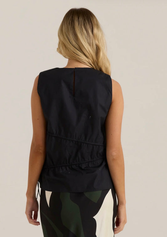 Elin Gathered Tie Top - Black