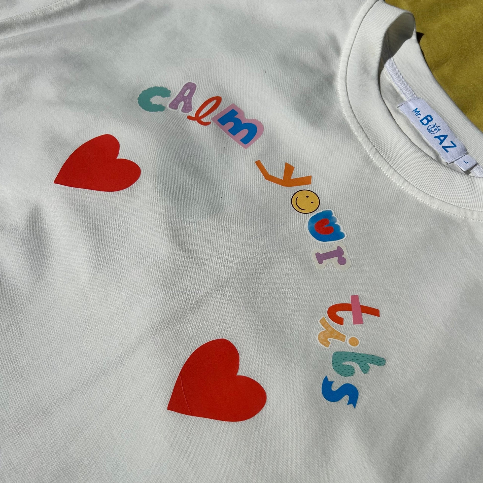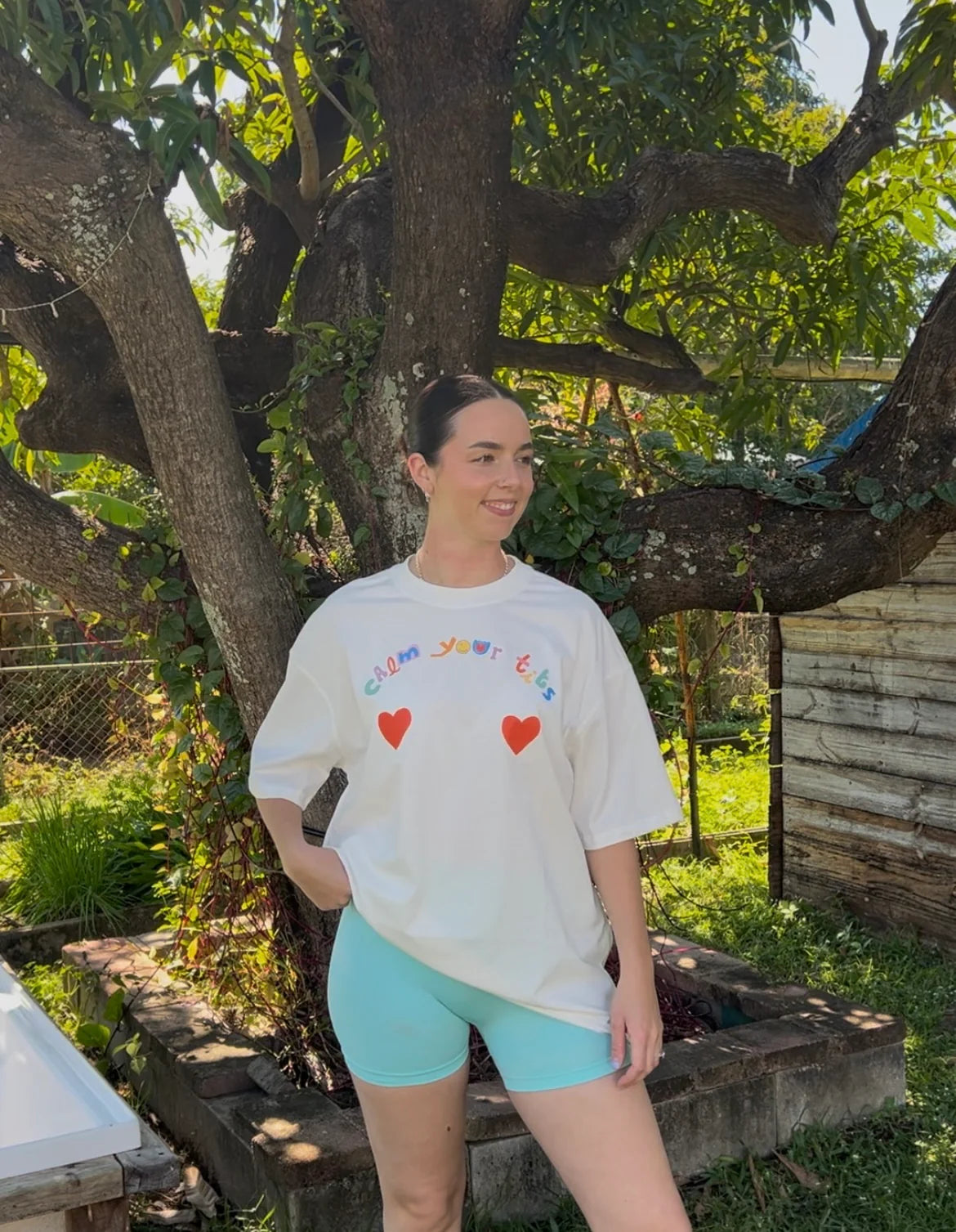 Our 200gsm 100% cotton oversized tee is designed by a local graphic designer, printed in DTF in Australia, and heat pressed by mumma B.