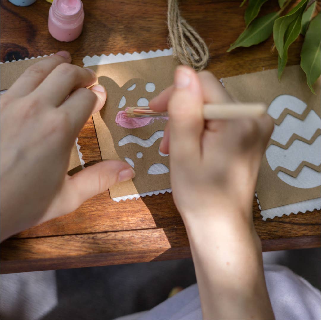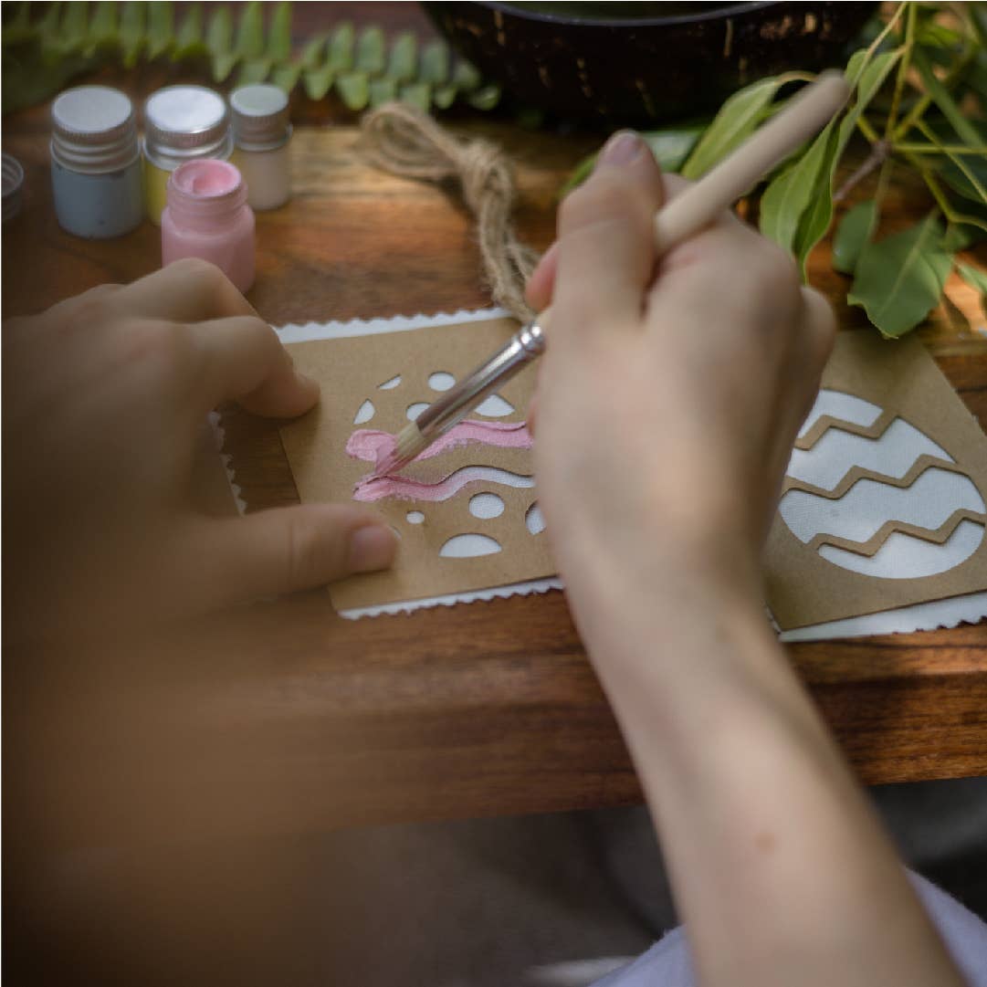 Using these egg stencils you can design and paint your unique easter bunting. Once dry, attach twine and hang up your creation for Easter. So much fun to make and display to enjoy this Easter.