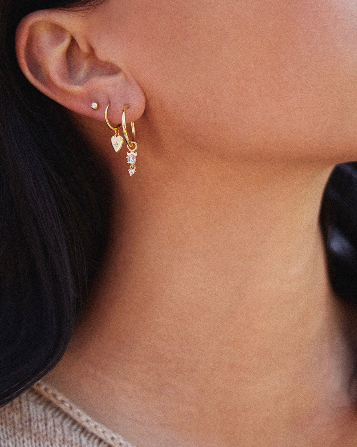Adorable heart-shaped charm sleepers featuring a delicate small crystal accent that catches the light. Perfect for adding a touch of sparkle and sweetness to your everyday look. These charming earrings combine cute design with elegant detail, making them ideal for both casual wear and special occasions.