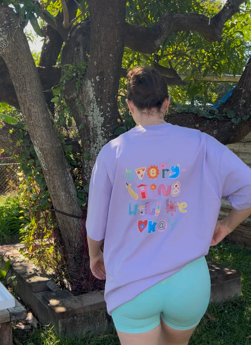 Our 200gsm 100% cotton oversized tee is designed by a local graphic designer, printed in DTF in Australia, and heat pressed by mumma B.