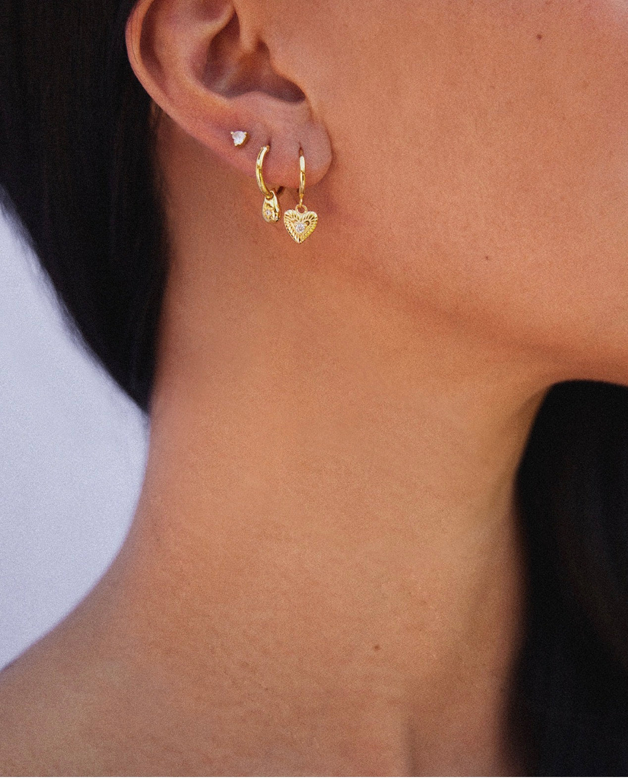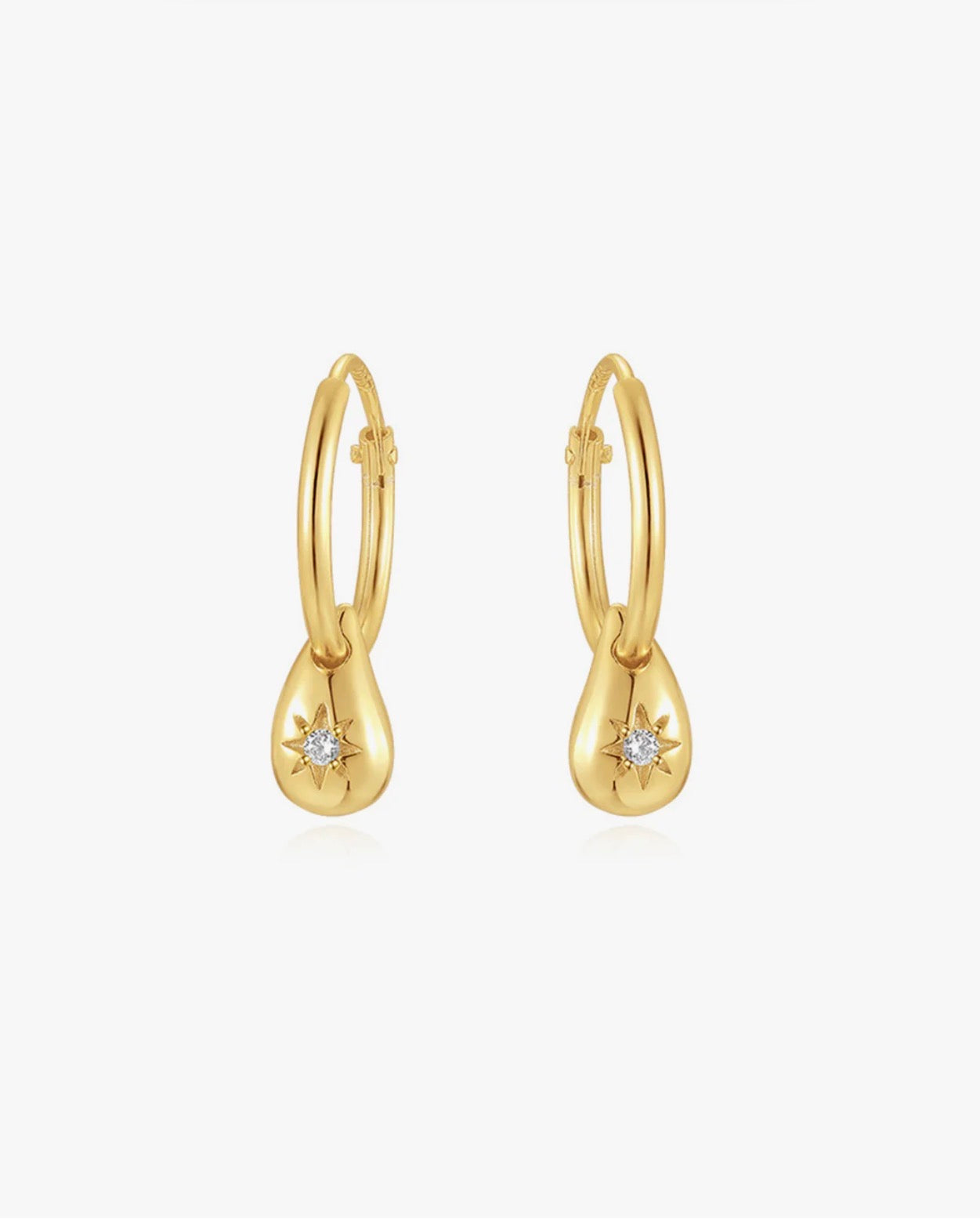 The Jasna Sleepers feature a charming hanging teardrop design adorned with a sparkling crystal accent. Perfect for everyday elegance, these delicate sleepers offer a subtle touch of sparkle that catches the light beautifully. The lightweight design makes them comfortable for all-day wear, while the graceful teardrop charm adds a feminine flourish to your look.