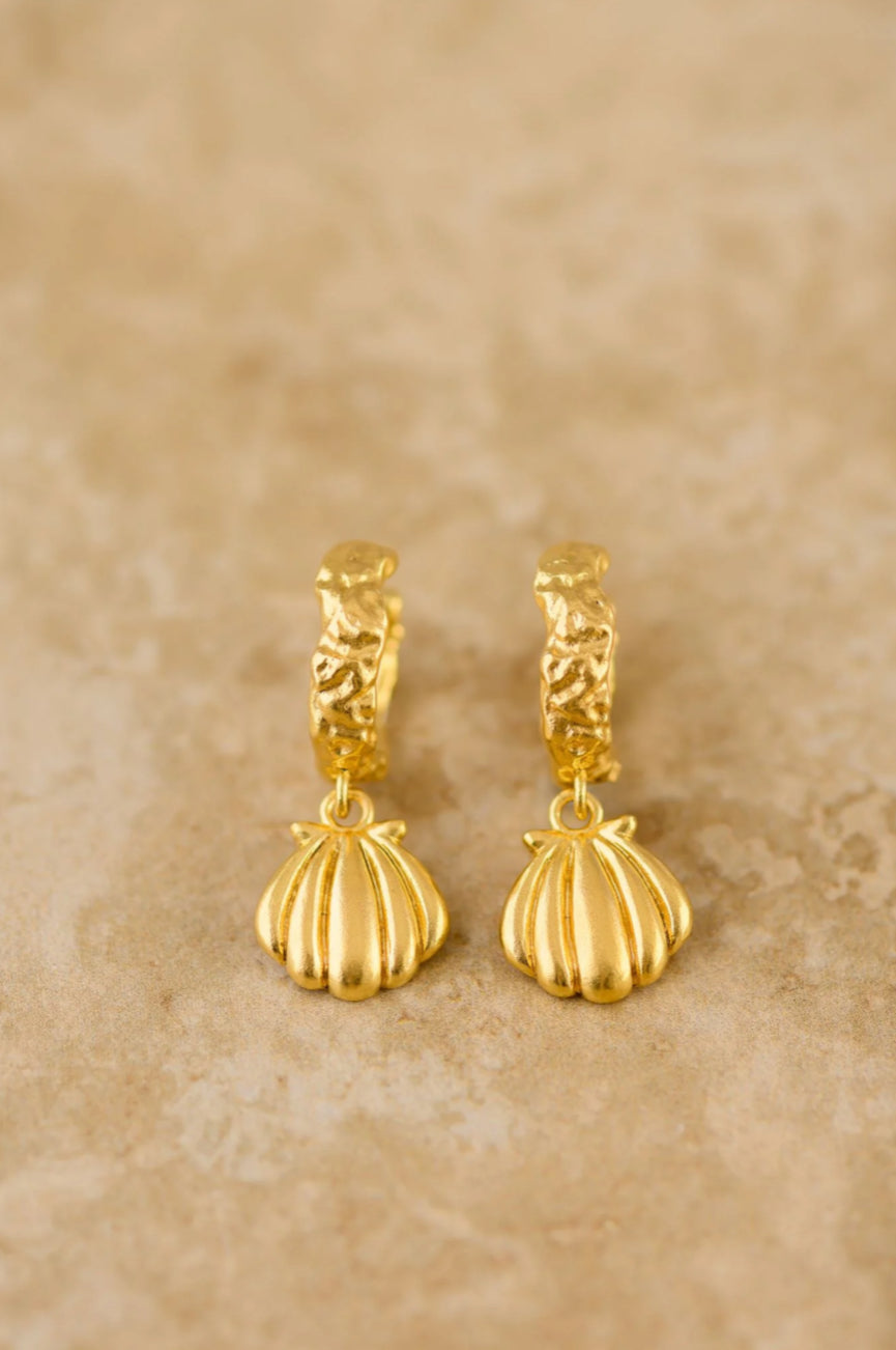 Striking and sculptural, the KAI Earrings blend bold texture with coastal elegance. Featuring organic-textured hoops and moulded seashell charms, each piece is crafted in 18Kt gold vermeil over sterling silver for a radiant, high-end finish. A refined statement inspired by the ocean’s raw beauty.