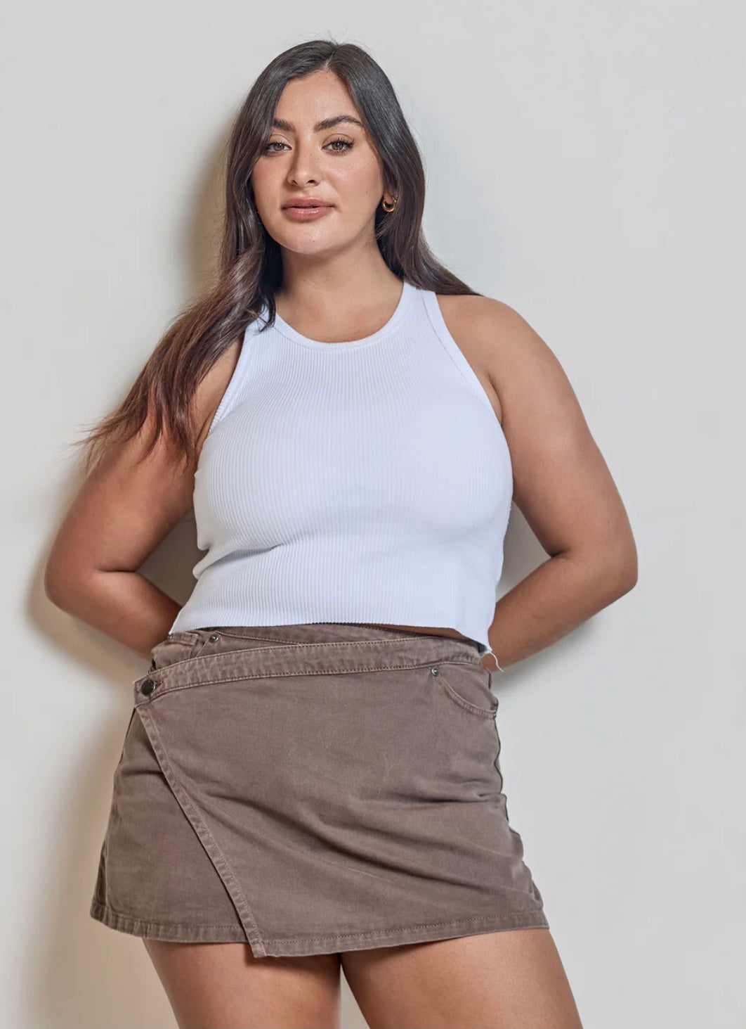 Elevate your casual style with our Leni Mini Skort, a fresh take on the classic skort. Crafted from 100% rigid cotton denim, this skort offers a structured silhouette with a vintage-inspired feel. It features a classic mini skirt front and built-in shorts underneath for added coverage and confidence. Functional front and back pockets bring everyday practicality, while a stitched hem and a vintage wash gives it an effortlessly cool, lived-in look. The mid-rise waist flatters your shape and pairs perfectly with cropped tops or tucked-in, and oversized knits.