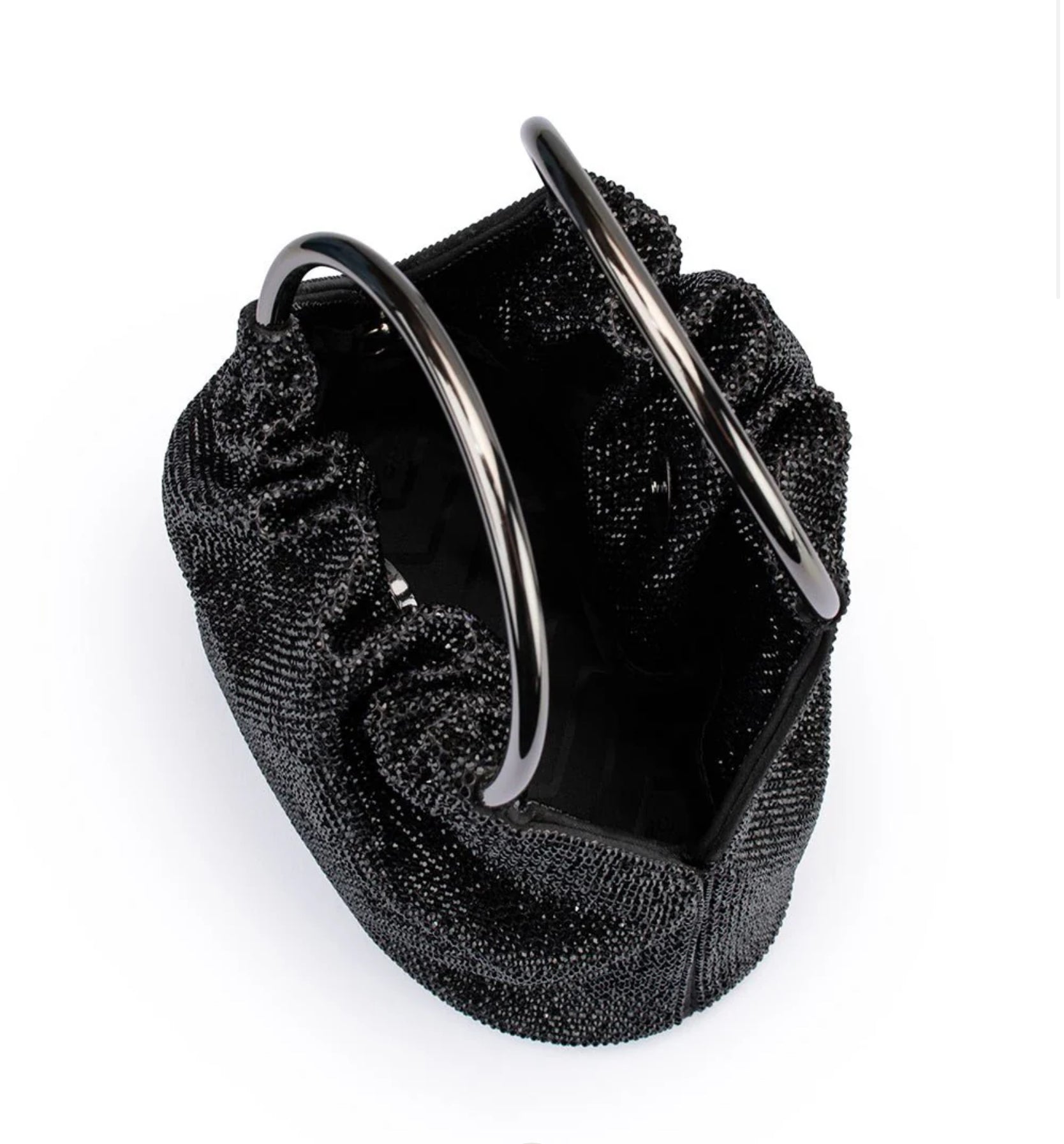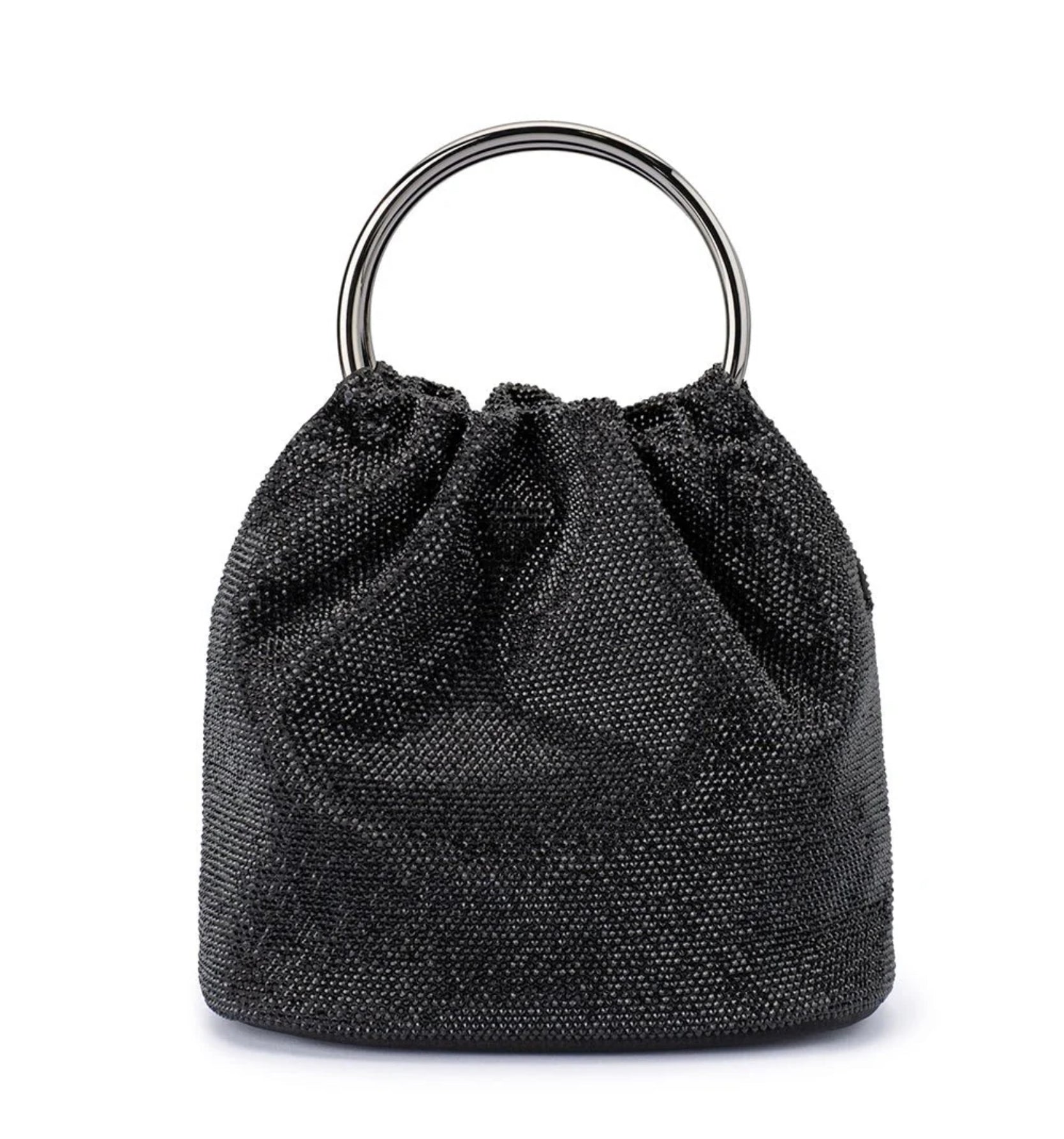 Adding to our best selling collection of ring handle bags, the MABEL Crystal Top Handle bag is roomy enough for a large smartphone, glasses and makeup essentials. Slip the bangles over your wrists or attach the additional shoulder chain for a classy on-the-go look.