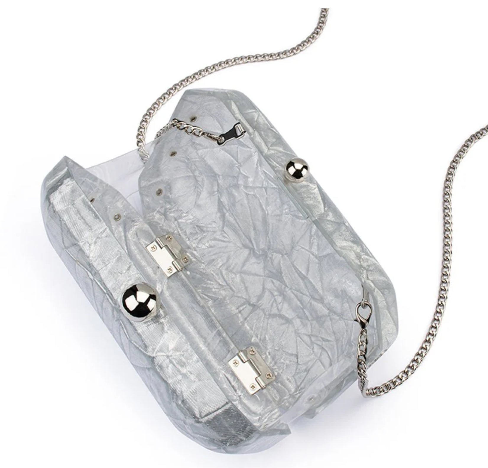 The MATEO Metallic faceted clutch is a stunning acrylic hardcase bag with a shiny metallic finish that will add a touch of luxe to any outfit whilst providing space for all your event essentials. It features a chain handle and also comes with a shoulder chain for multiple styling options.