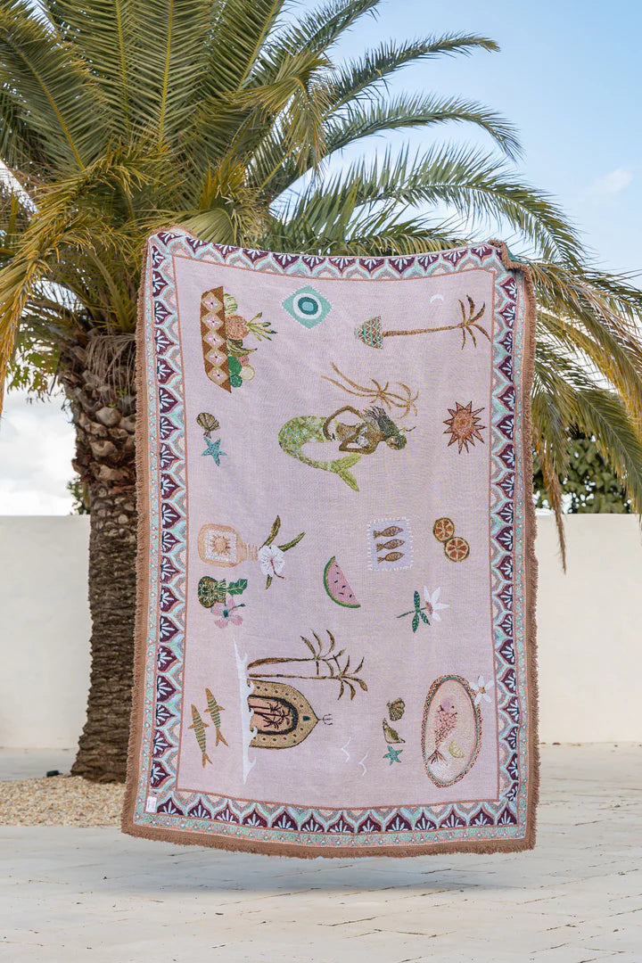 The Sea Song throw is a special collaboration with the Good Throw Co. I was thrilled when Jess suggested a mermaid throw but also wanted to use elements from other painting that she loved. Combining strong colour & pattern, we came up with this playful design which brings together our shared love of the ocean, tropical hideouts and of course Mermaids.